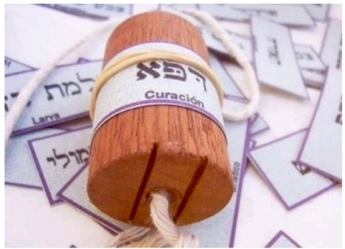El péndulo hebreo está hecho de madera de roble o haya y funciona a través de las vibraciones de las letras hebreas, que se unen al péndulo cilíndrico con una goma elástica mediante etiquetas. El hebreo es una de las lenguas sagradas, junto con el sánscrito, el mandarín, el árabe y el quechua.